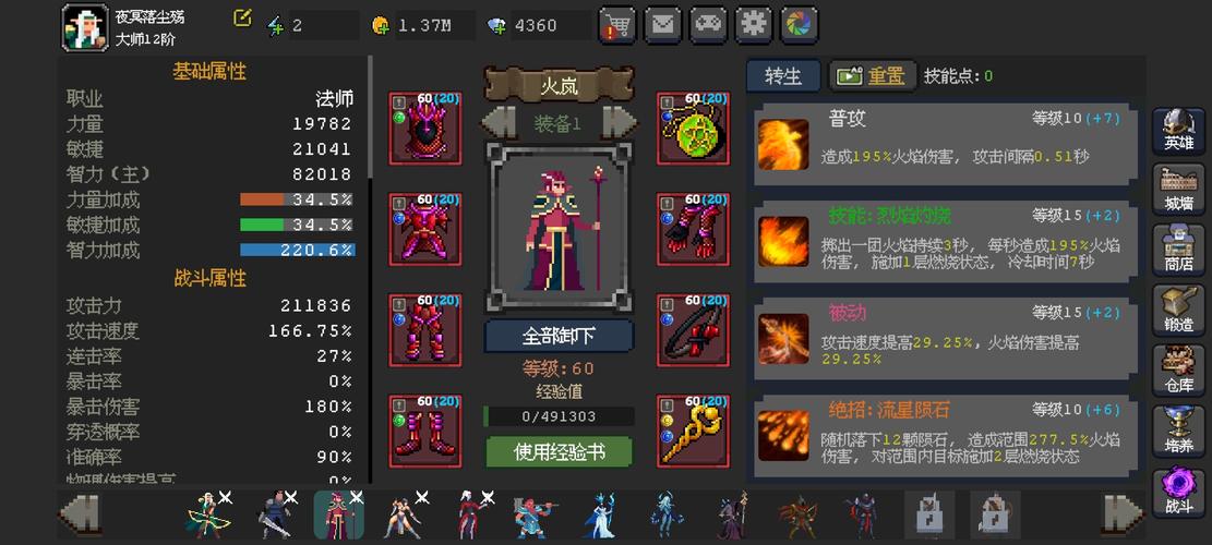 武器词条遵循双暴法则:暴击率与暴击伤害必须同时存在。在铁匠铺优先锻造"精确"与"狂怒"词缀,当这两项数值突破65%与150%阈值时,输出会产生质变。注意!前60关掉落的装备最高仅5级词条,建议保留金币用于后期锻造。